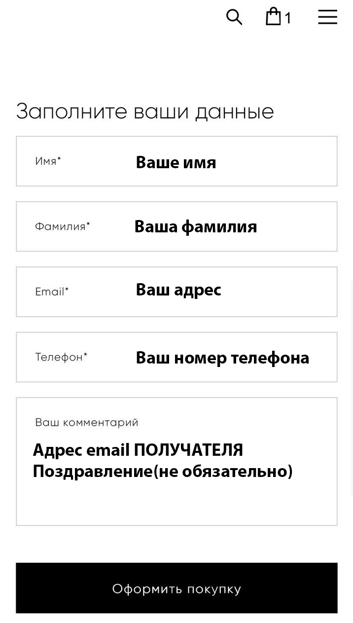 - Сразу после покупки мы отправляем письмо на указанный адрес с личным поздравлением от вас. Получатель активирует сертификат на сайте в виде промокода на скидку и сможет воспользоваться им в тот же день
