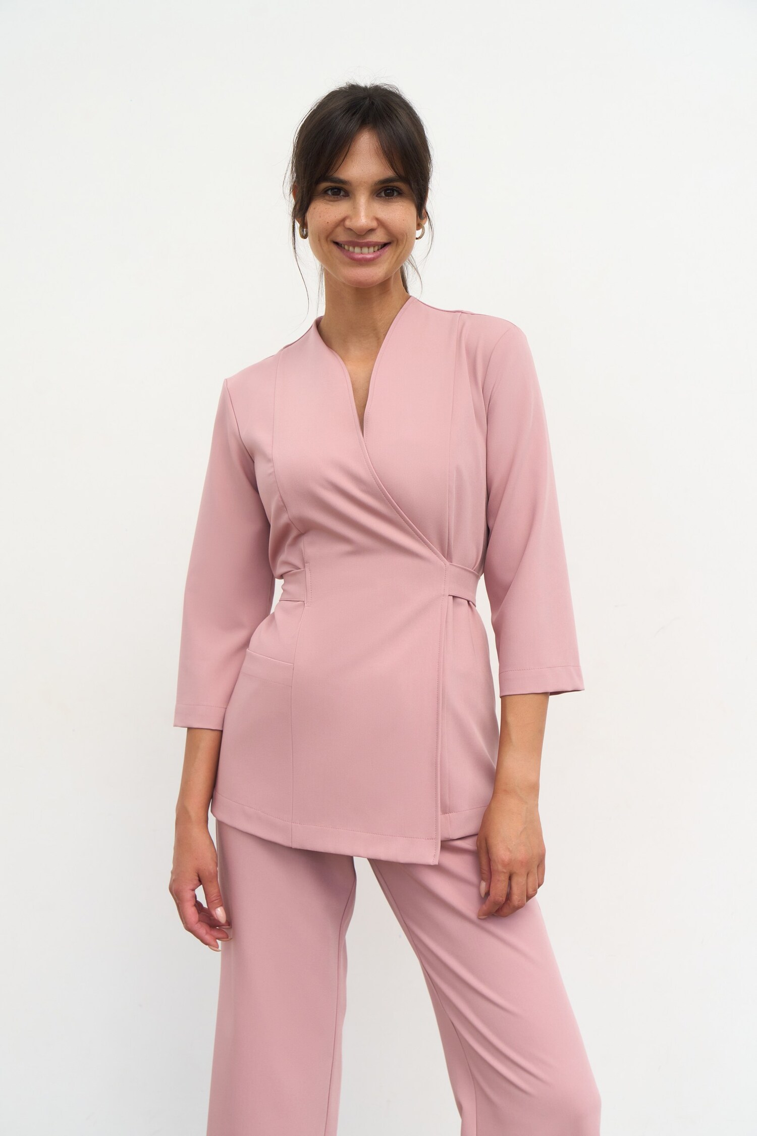 Хирургическая блуза на запахе с поясом светло-розовая KL 210