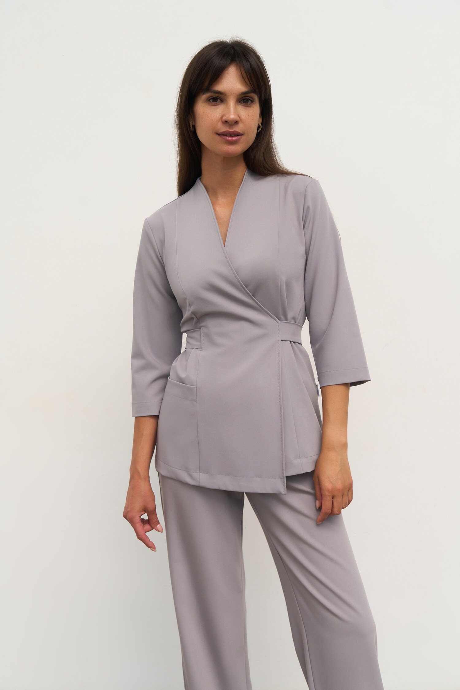 Хирургическая блуза на запахе с поясом светло серая KL 210